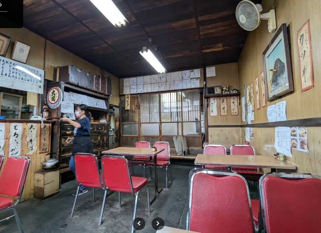 今も、55年たっていますが、変わりません。当時のおかもちがいまもおいてありますが、もう出前はやっていないでしょう。明和高校の先生もここからとっていました。創業者のお爺さんから4代目になっており、2025年5月でいったん閉店し、2026年に開業するようです。