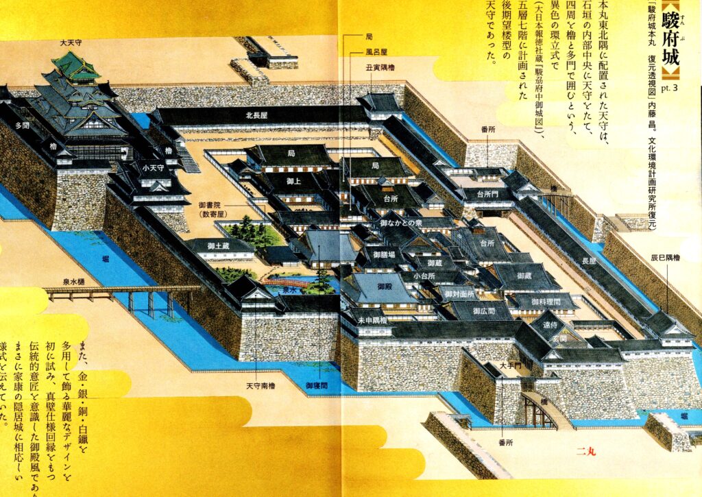城マニアは、こんな楽しみ方をします。私も加藤理文氏の文章を楽しんでいます。歴史家の加藤氏に古建築の技術がわかることはありえません。美しい天守の絵を描く中村泰朗氏を誉めたたえ、内藤昌先生の家康の駿府城復元を全く俎上に載せずして、加藤氏自らが、家康の駿府城の下に遺跡として眠る中村一氏の駿府城を妄想しています。