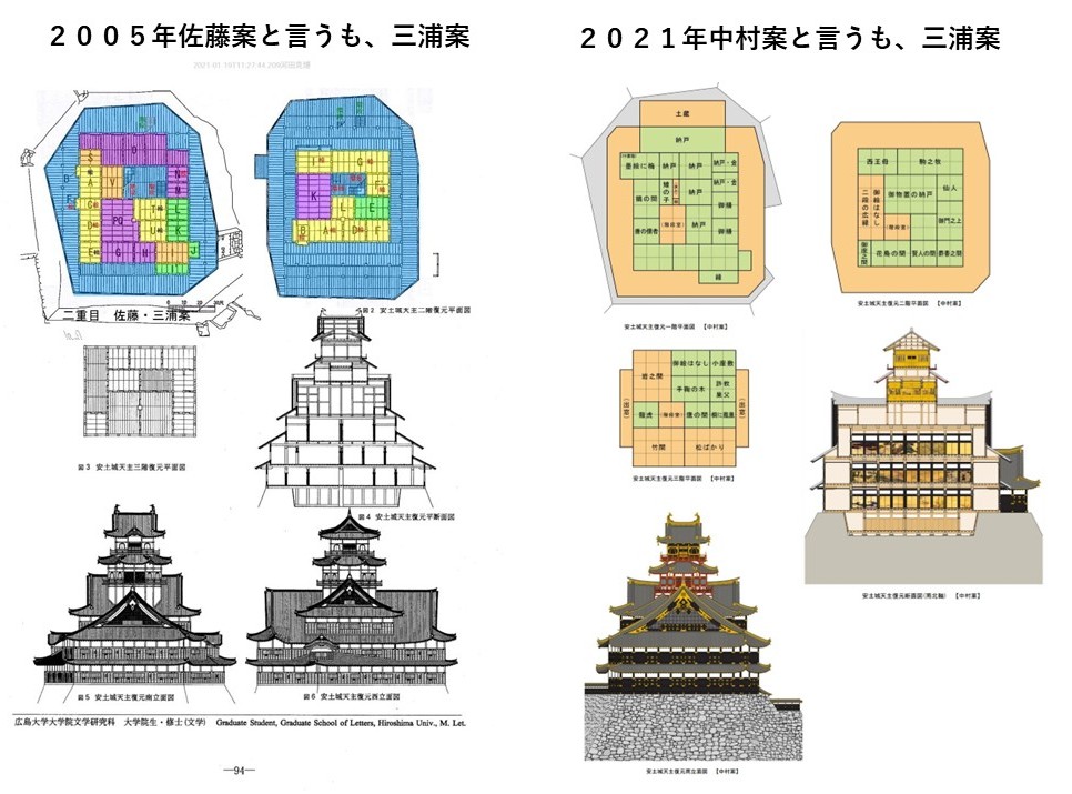 三浦・中村案には、宮上氏のような論(藤岡先生に否定されましたが)が全くありません。内藤復元案を学問として否定できなければ、どんな案も復元案とは言えないのですが、彼らは無視しています。学問でない、城マニアの空想の世界での遊びだと考えているのでしょう。