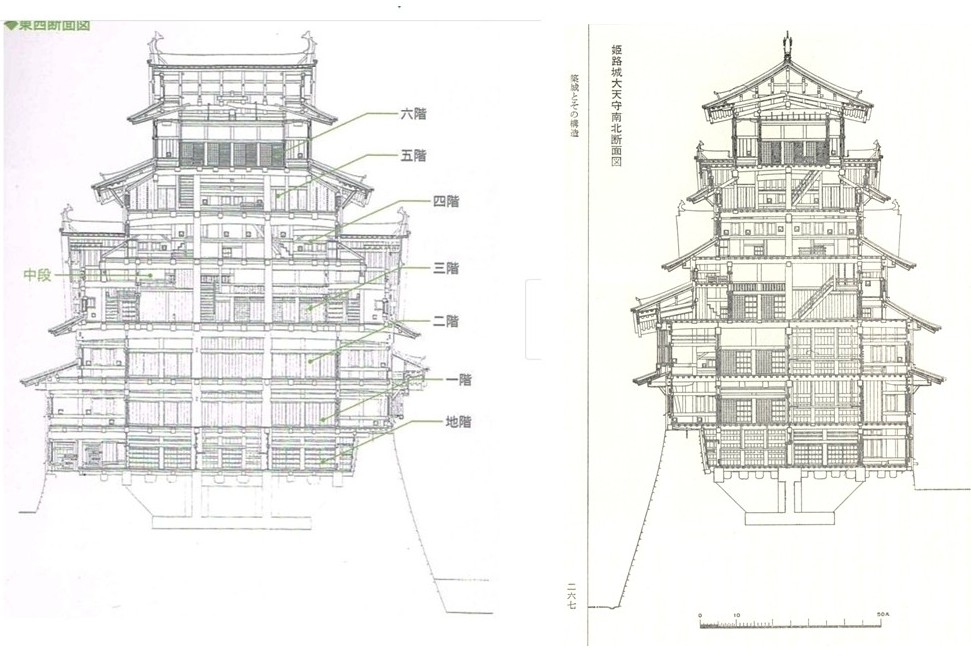 安土城天主は平面図しかありませんが、信長公記に柱の長さと太さの記事があり、平面図を貫く柱の位置が重なる事から、通柱か管柱かの判断をしました。